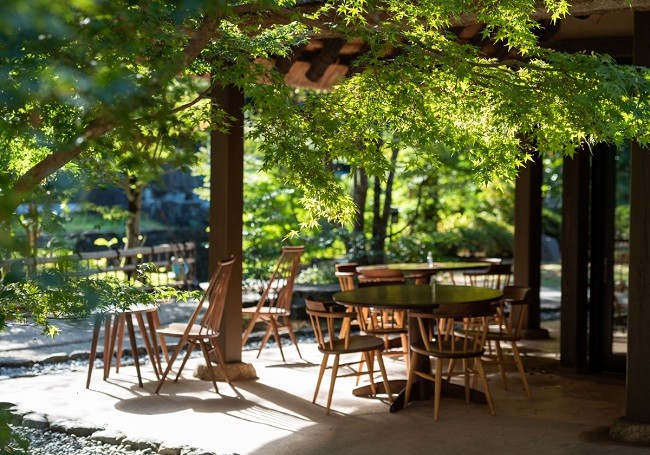 みずみずしい若葉が青々と生い茂る心地の良い季節、喫茶空間・茶舎のテラス席でいただく、茶舎のアフタヌーンティー。