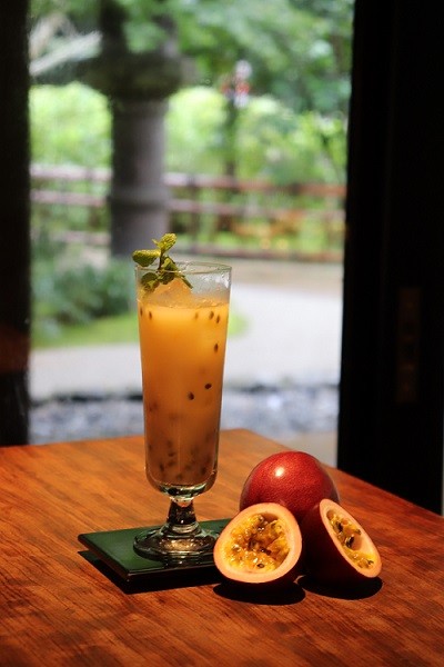 夏風が感じられる茅葺屋根の下で、爽やかでフルーティなパッションフルーツの香りを、