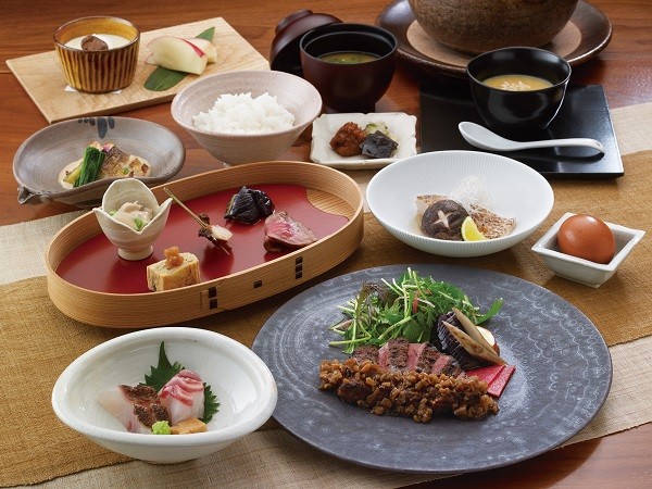 秋の特別コースのメインには、「嘉穂牛のフィレ炭火焼き 舞茸ソース」をお召し上がりいただけます。