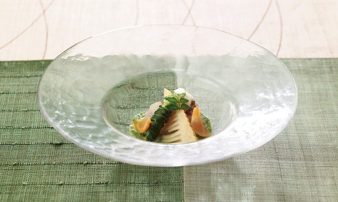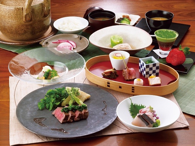 御料理 茅乃舎では、旬の食材や素材の持ち味を引き出した料理をコース形式でご案内しております。