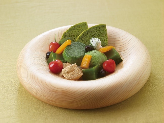 抹茶プリン、アイス、シフォン、そしてわらび餅に寒天と、まさに八女産抹茶の芳醇な香りと自然な渋みを心ゆくまでご堪能いただける贅沢なスイーツです。