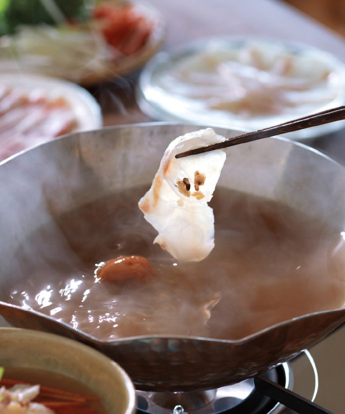福岡県産天然鯛と鹿児島県産の黒豚。ふたつの楽しみを一度に叶える贅沢なだししゃぶ鍋です。