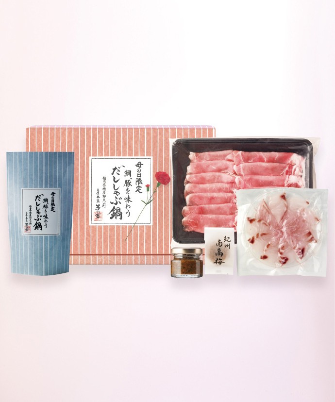 母の日限定「鯛、豚を味わうだししゃぶ鍋」は具材と調味料までついているので準備も手軽にごちそうをいただけます。