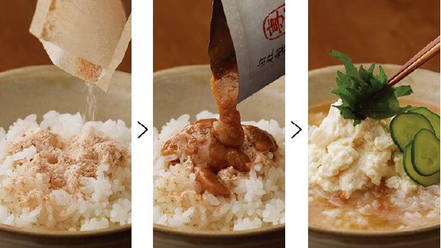 1.温かい御飯に、袋を破った「特製だし」をまぶす