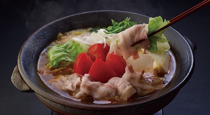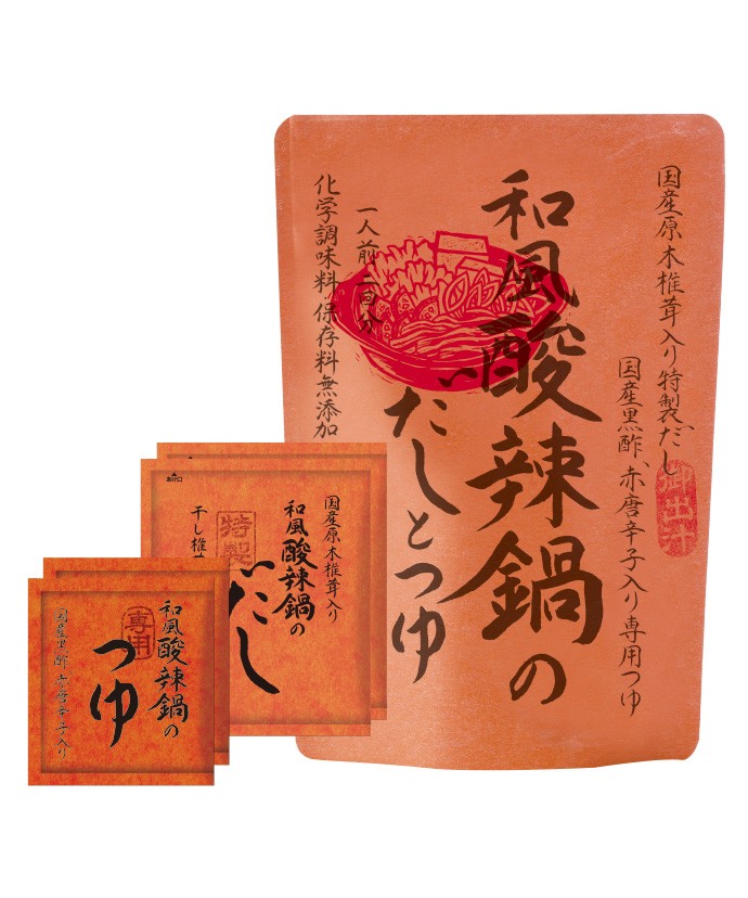 椎茸のだしを使用した、国産黒酢のコクある酸味と唐辛子と豆板醤の辛味が特徴の和風酸辣鍋です。トマトやレタスなどを加えてどうぞ。