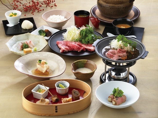 2023年の冬の特別コース【花】のメインには「嘉穂牛と自然薯のすき焼き」をご用意いたします。