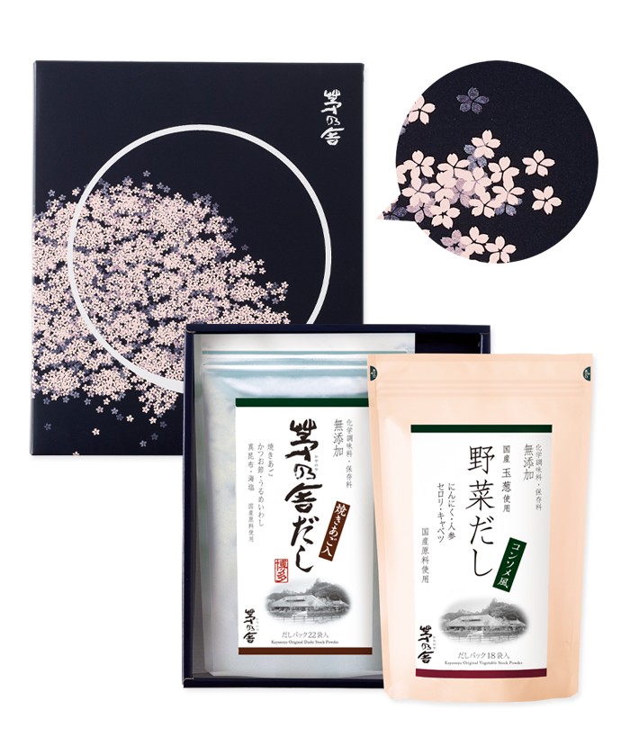 茅乃舎では、春のお祝いにぴったりな華やかな桜の花びらがほどこされた春限定贈答箱入ギフトをこの時季限定でご案内しております。