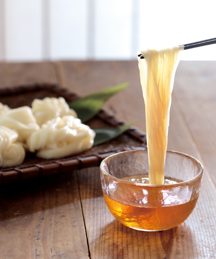 茅乃舎ではこの夏、北海道産「ゆめちから」などの国産小麦100%にこだわった「島原手延べ素麺」や素麺のためだけを考えた専用つゆ「素麺つゆ」が新登場。夏に何度も食べる素麺だから、多彩な楽しみ方で味わえるつけだれも2つの味を新しくご用意しました。ぜひ夏の食卓にお役立てください。