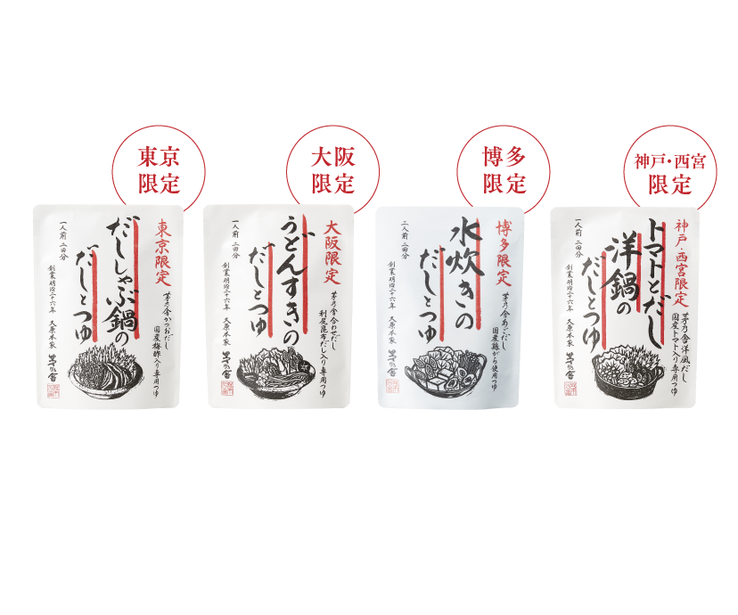 毎年好評の、茅乃舎の鍋シリーズを今年もご用意いたしました。茅乃舎の鍋シリーズは、だしとつゆが別々になっているのが最大の特徴。だしの風味をしっかり引き立たせることで、うまみあるスープがご家庭でもつくれます。
