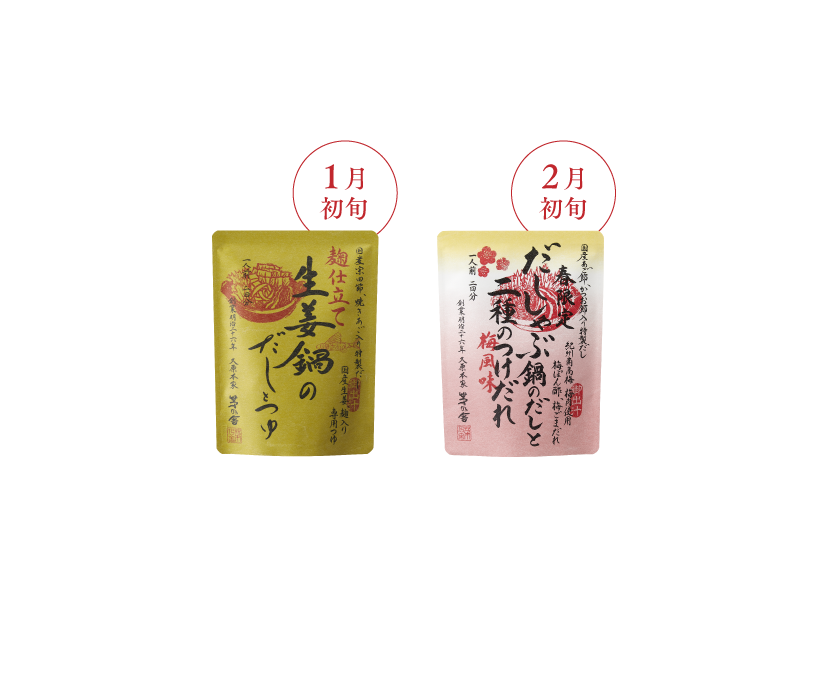 1月より、毎年大人気の「生姜鍋のだしとつゆ」が販売となります。季節限定となりますので、冬の食卓にお役立てください。