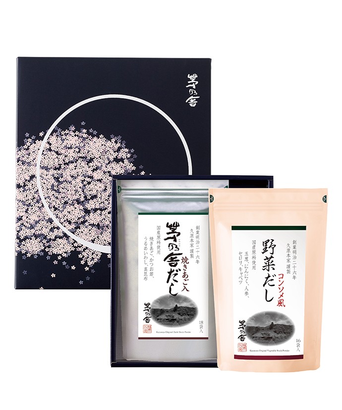 定番人気の茅乃舎だし・野菜だしを、華やかな桜の花びらがほどこされた春限定贈答箱に詰め合わせたギフト。初めて贈る方にも、いつもお贈りする方にも最適です。
