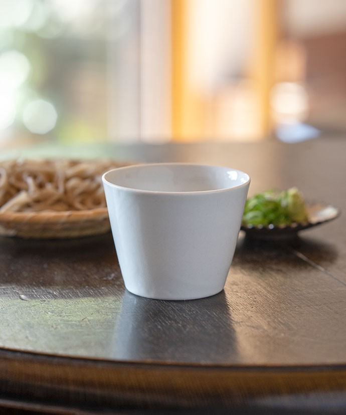 伊万里の伝統から学んだ色と形。素麺やざるそばにはもちろん、小さなおかずや飲み物にもお使いいただけます。内側のそこはゆるやかな傾斜になっており、スプーンが滑らかに当たるように工夫したので茶碗蒸しにも最適。白磁と呉須(ごす)の2色をご用意しました。